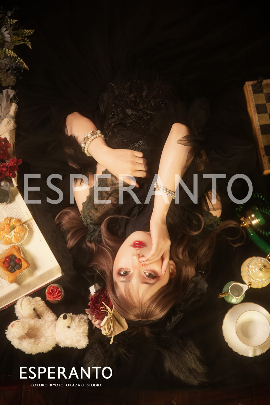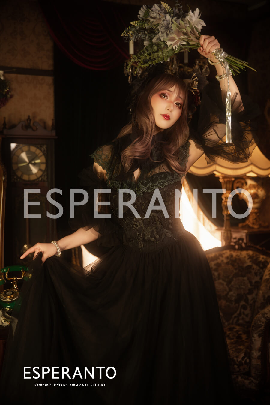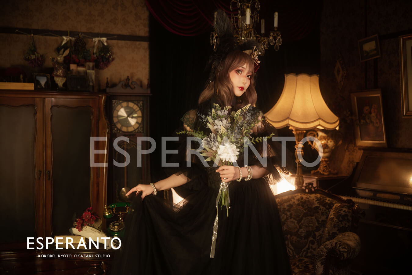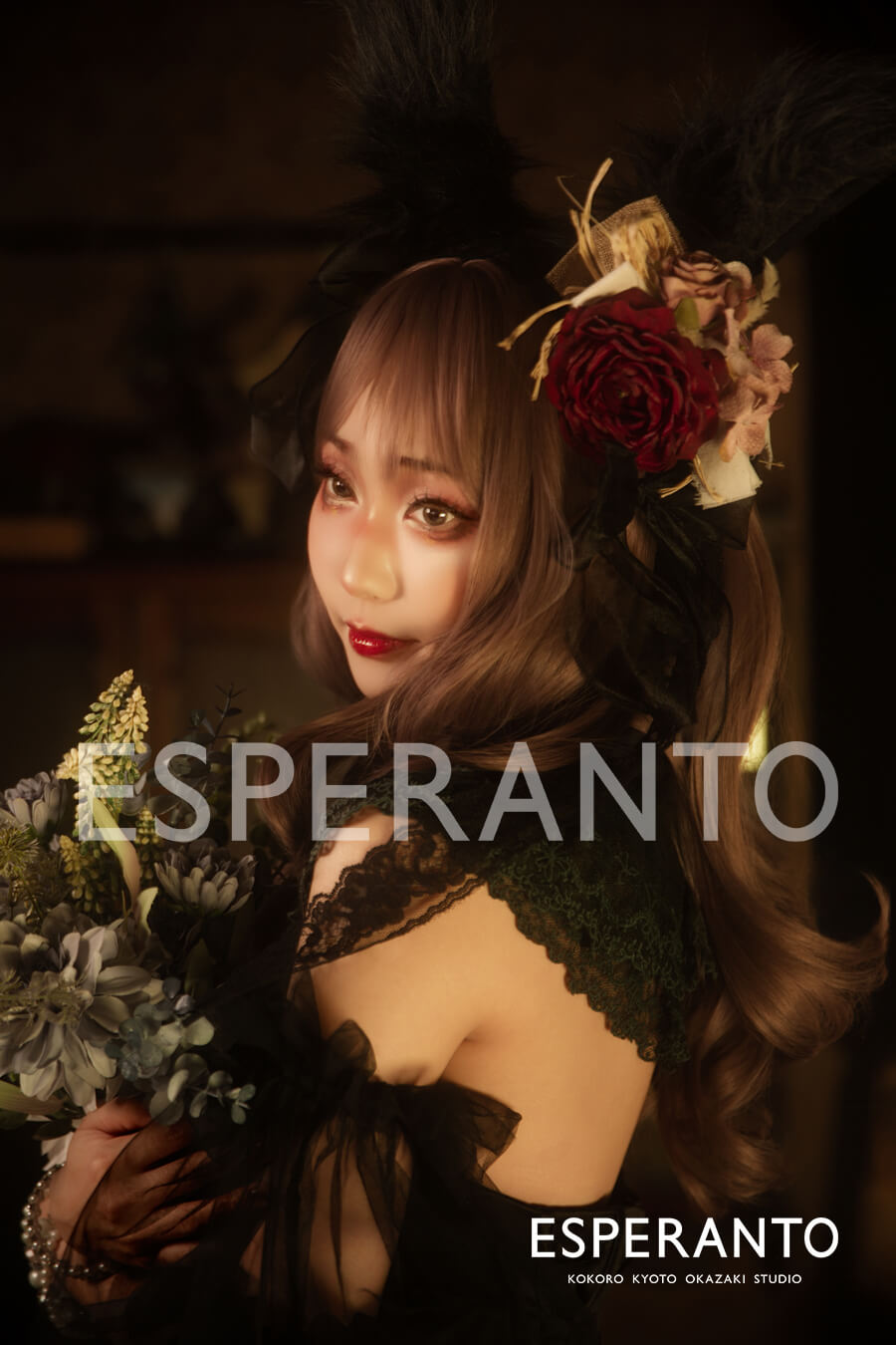 撮影のベルベットココアブースは “ココア” と言うだけあって深みのある色味のアンティークな雰囲気がとってもお洒落なブースですが、今回の撮影ではより明るさを抑えたライティングがされておりとてもドラマチックに感じられます(灬˘╰╯˘灬)♥。・゚